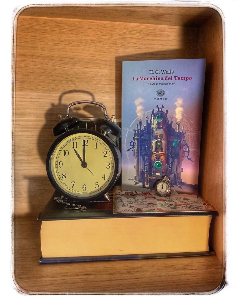 Il genere ha però origini antiche, tra cui alcuni annoverano addirittura Luciano di Samosata con il suo “Icaromenippo” (II secolo d. C.). Più vicino a noi, invece, troviamo tra i precursori Cyrano de Bergerac con “L’altro mondo” (1657), Voltaire con “Micromégas” (1752), Mary Shelly con il suo “Frankenstein” (1818). È nell’ottocento che si afferma il romanzo fantascientifico, con i due padri fondatori: Jules Verne e Herbert George Wells. Proprio di Wells e del suo “La macchina del tempo” vi vorrei parlare oggi, dopo averlo letto per il #bookbingo di @imieiamicidicarta e @sognidi_carta . In questo libro sono presenti i tropi che poi ritroveremo nelle opere successive: il progresso scientifico, l’avventura, il viaggio nel tempo, l’ambientazione distopica. Il tutto ha come intento non solo il divertimento, ma anche una chiara critica alla realtà presente. Il lettore è catturato da elementi di facile presa come il fascino dell’ignoto e dell’imprevisto, il ritmo narrativo coinvolgente e la lunghezza davvero contenuta della narrazione. “La macchina del tempo” ha sicuramente aperto una nuova strada per il romanzo europeo e non solo, quindi il significato letterario di questa opera è di rilevanza fondamentale. Da lettrice non credo sia un genere che frequenterò molto, ma sono contenta di aver avuto modo di leggerne almeno un esempio. Resto comunque convinta che per chi voglia approcciarsi alla fantascienza questo sia un buon primo passo da cui partire. Ma ditemi di voi: siete lettori di fantascienza? Avete già letto questo libro? fatemi sapere nei commenti qui sotto!
