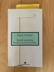 Prendete la vita con leggerezza, che leggerezza non è superficialità, ma planare sulle cose dall’alto, non avere macigni sul cuore.