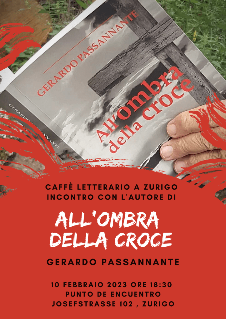 Si terrà il prossimo venerdì, 10 febbraio, la presentazione di All’ombra della croce, ultimo romanzo storico di Gerardo Passannante. La serata è organizzata dal Caffè letterario a Zurigo (locandina qui accanto). Se siete in Svizzera o a Zurigo, questa è una buona occasione per conoscere l’autore, i cui articoli appaiono anche qui su Giornate di Lettura, inoltre potreste incontrare il nostro team al completo! Vi aspettiamo dunque per una serata all’insegna della letteratura e della storia!