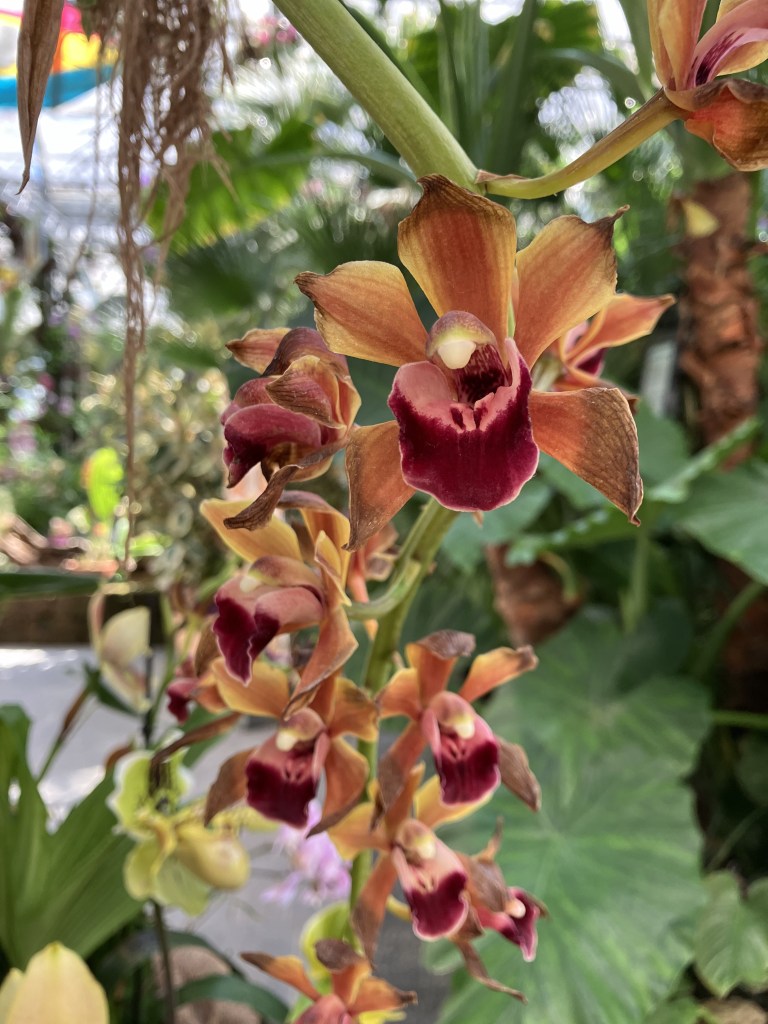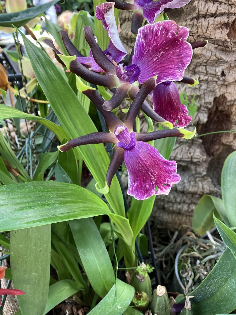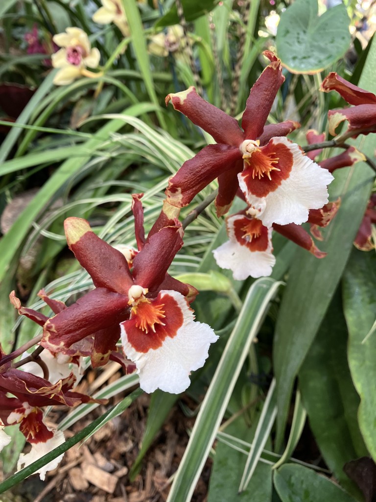 Per una coincidenza fortunata, sono riuscita a visitare la loro esposizione di orchidee, una pianta che di solito associo al viola, al rosa, al bianco. Niente di più sbagliato: ne esistono di specie diversissime, per colore (alcune nere, alcune gialle, alcune maculate, altre a strisce!), per dimensione (alcune piccoline, dai petali che sembrano quasi minuscoli tentacoli di una medusa, altre più maestose), per forma (alcune con i petali aperti a ventaglio, altre dove i petali inferiori si uniscono a formare un sacchettino).