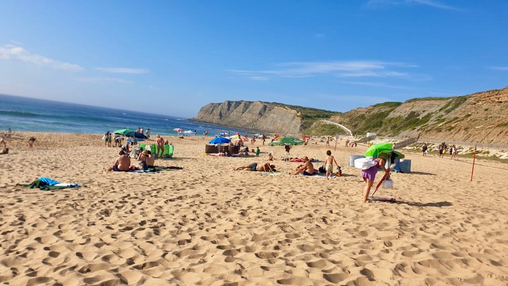 Arroccato sulle pendici di una spiaggia dorata, incastonata tra due promontori, l’appartamento scelto guardava un oceano mai sereno, sempre increspato dalle onde, la cui risacca gorgoglia ad ogni ora. Un vorticoso susseguirsi di stagioni ha contraddistinto quei 7 giorni a Praia Azul – questo il nome della baia a 60 km da Lisbona. Laggiù, all’estremo occidentale dell’Europa, il clima cambia a un ritmo vorticoso: estati, primavere e autunni si rincorrono da un’ora all’altra, da una città all’altra.