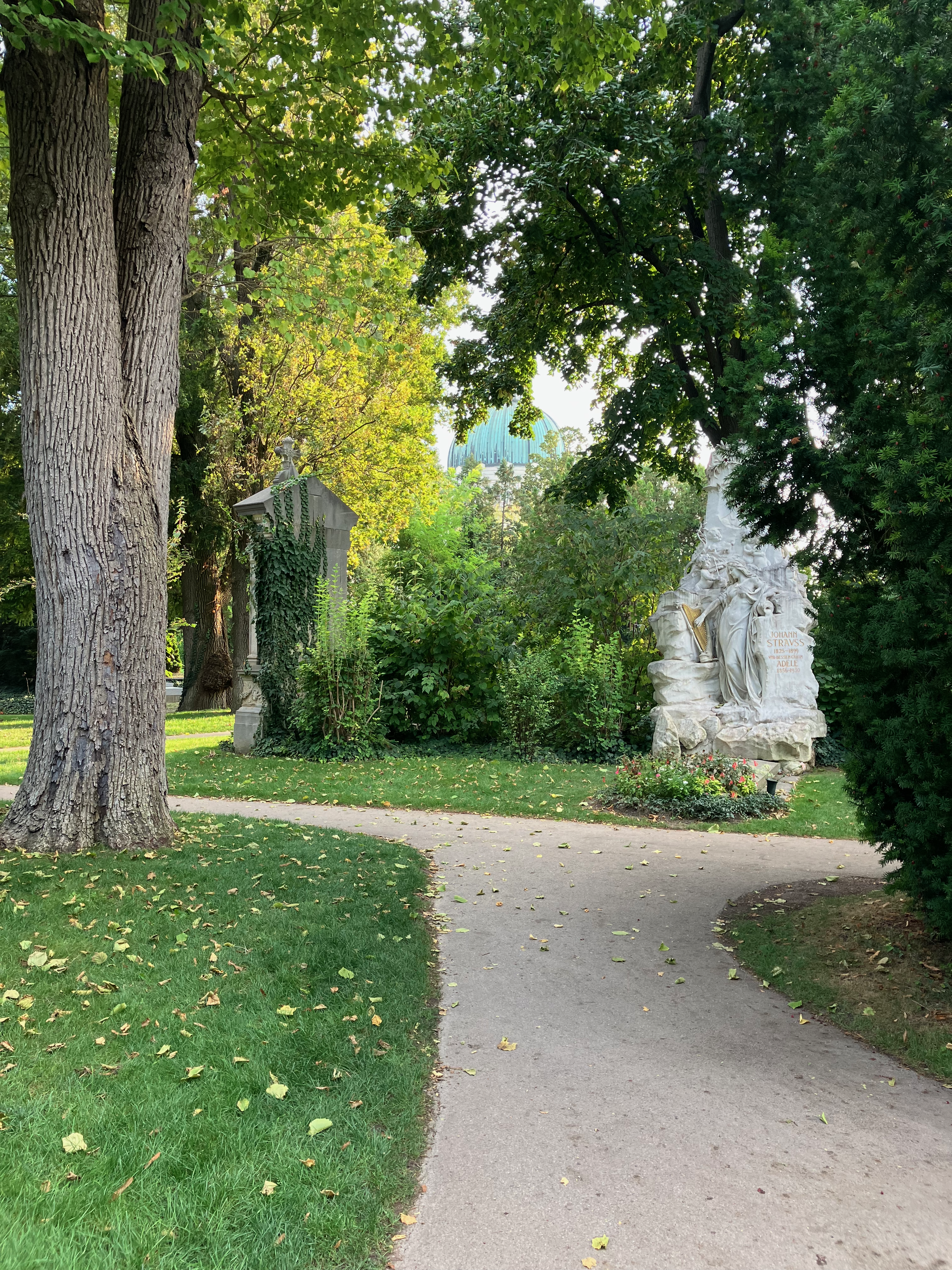Quest’anno, l’autunno ha fatto la sua comparsa mentre ero lontana: piccoli segni che il clima stava cambiando, che la natura si stava preparando a una nuova fase del suo ciclo. Mi trovavo a Vienna e, dopo la chiusura del convegno a cui avevo partecipato, mi ero presa qualche giorno per visitare la città. Era l’ultimo venerdì di agosto, e non avevo molto tempo; era già pomeriggio, ragion per cui avevo deciso di visitare un luogo particolare, a venti minuti dal centro: il Cimitero Centrale. Aperto nel 1874, è il secondo cimitero più grande d’Europa e ospita religioni diverse: ebraismo, buddismo, cristianesimo… Si tratta di un complesso monumentale dalla cui entrata parte un largo viale che attraversa i vari gruppi di sepolture, per arrivare poi alla Chiesa commemorativa di San Carlo Borromeo, in stile Art Nouveau (1908-1911), ai cui piedi sono sepolti, nella cripta presidenziale, alcuni presidenti federali dell’Austria. Tuttavia era un’altra la ragione per cui mi trovavo lì, ovvero per far visita alle Musiker-Ehrengräber, una sezione del cimitero dove riposano i grandi compositori viennesi: Ludwig van Beethoven, Johann Strauss Padre e figlio, Franz Schubert e Johannes Brahms.
