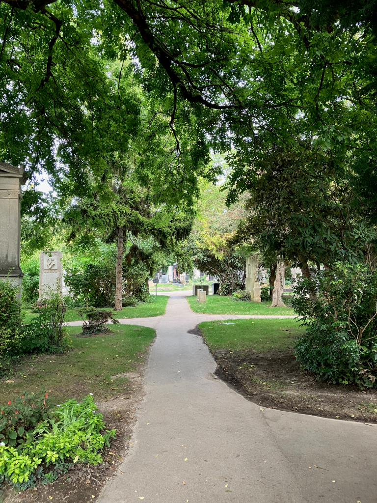 Nel raggiungerne le loro sepolture, mi ero accorta di come il cielo si fosse rannuvolato, il vento era diventato più insistente, e una lieve pioggerellina aveva iniziato a spruzzare il percorso davanti ai miei piedi. L’autunno si è annunciato così, prendendomi del tutto alla sprovvista, dato che nei giorni precedenti avevamo dovuto sopportare un sole costante e inclemente, con temperature attorno ai 30-32 gradi. Poco male, trovavo quel cambio di atmosfera particolarmente adatto al luogo che stavo visitando e così porsi i miei omaggi a quei grandi nomi del passato, ascoltando un breve estratto di una melodia da loro composta. Non me ne andai subito, ma mi intrattenni in una passeggiata tra le tombe; il Cimitero Centrale di Vienna infatti non è solo pensato per il ricordo e la preghiera, ma è, come la cultura nordica insegna, una riserva naturale: un parco in cui fauna e flora convivono con visitatrici e visitatori allegrə o tristi, spensieratə o taciturnə, bambinə che giocano con un pallone, lettrici e lettori che si godono il silenzio in cui sono avvolti i cipressi, oppure viennesə più sportivə in sella alla loro bicicletta. E poi c’ero io, che mentre camminavo, iniziavo a salutare un’estate che per me era stata ricca di avvenimenti, viaggi, ma anche di preoccupazioni, di sfide vinte o rimandate. Il cielo rimaneva coperto, con qualche laconico raggio a far capolino, tra le stradine alcune foglie erano già cadute dalle fronde, il cui verde si stava macchiando qua e là di tonalità più calde, ed eccolo, in lontananza, uno scoiattolo arrampicarsi con irriverenza sul sepolcro di Beethoven, una ghianda tra i denti, per raggiungere, lesto, la sicurezza dei rami più alti.