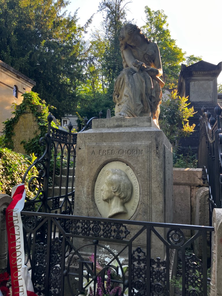 Non è uno scrittore, ma sarebbe ingiusto espungerlo da questa passeggiata. La tomba di Chopin è tra le più visitate e anche tra le più eleganti del Père-Lachaise. A vegliare sulla salma del compositore, scolpita sopra il sepolcro, una Musa piange a capo chino: trattiene un dolore che non è privato, ma universale. È il lutto della bellezza perduta. Chopin morì a Parigi nel 1849, a soli 39 anni, dopo aver lasciato la Polonia per sempre all’età di vent’anni. Compositore e pianista di genio, trasformò la musica per pianoforte con i suoi notturni, le polacche, le mazurche – pezzi che portavano dentro tutta la nostalgia per una patria perduta. Il suo corpo riposa qui, ma il cuore – come richiesto da Chopin – fu portato a Varsavia e murato nella Chiesa di Santa Croce. Camminando intorno alla sua tomba, con i gigli freschi lasciati da chi ancora lo ascolta, viene naturale ripensare all’idea di patria, di esilio, di una musica che riuscì a trasformare la nostalgia in bellezza. In quel silenzio tra le pietre umide, Chopin sembra più vicino al sogno che alla perdita.