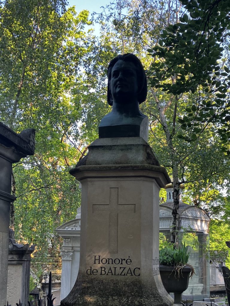 Il busto di Balzac svetta con quell’energia trattenuta che fa pensare a un personaggio dei suoi romanzi. La tomba è massiccia, decorata con libri scolpiti nella pietra – un omaggio alla sua opera. E in fondo non poteva essere altrimenti per l’autore che ha dato vita a migliaia di personaggi in opere come Papà Goriot, Eugénie Grandet e Le illusioni perdute. Ancora oggi i lettori lasciano fiori freschi sulla sua sepoltura. È il segno che Balzac continua a essere letto, che la sua Comédie humaine – quel progetto ambizioso di raccontare un’intera società – non è solo un monumento letterario del passato, ma una presenza viva. Davanti alla tomba viene spontaneo pensare a quei personaggi che si rincorrono da un romanzo all’altro, a quelle storie che si intrecciano in un grande affresco della Francia ottocentesca. La monumentalità della sepoltura rispecchia quella dell’opera: entrambe costruite per durare nel tempo.